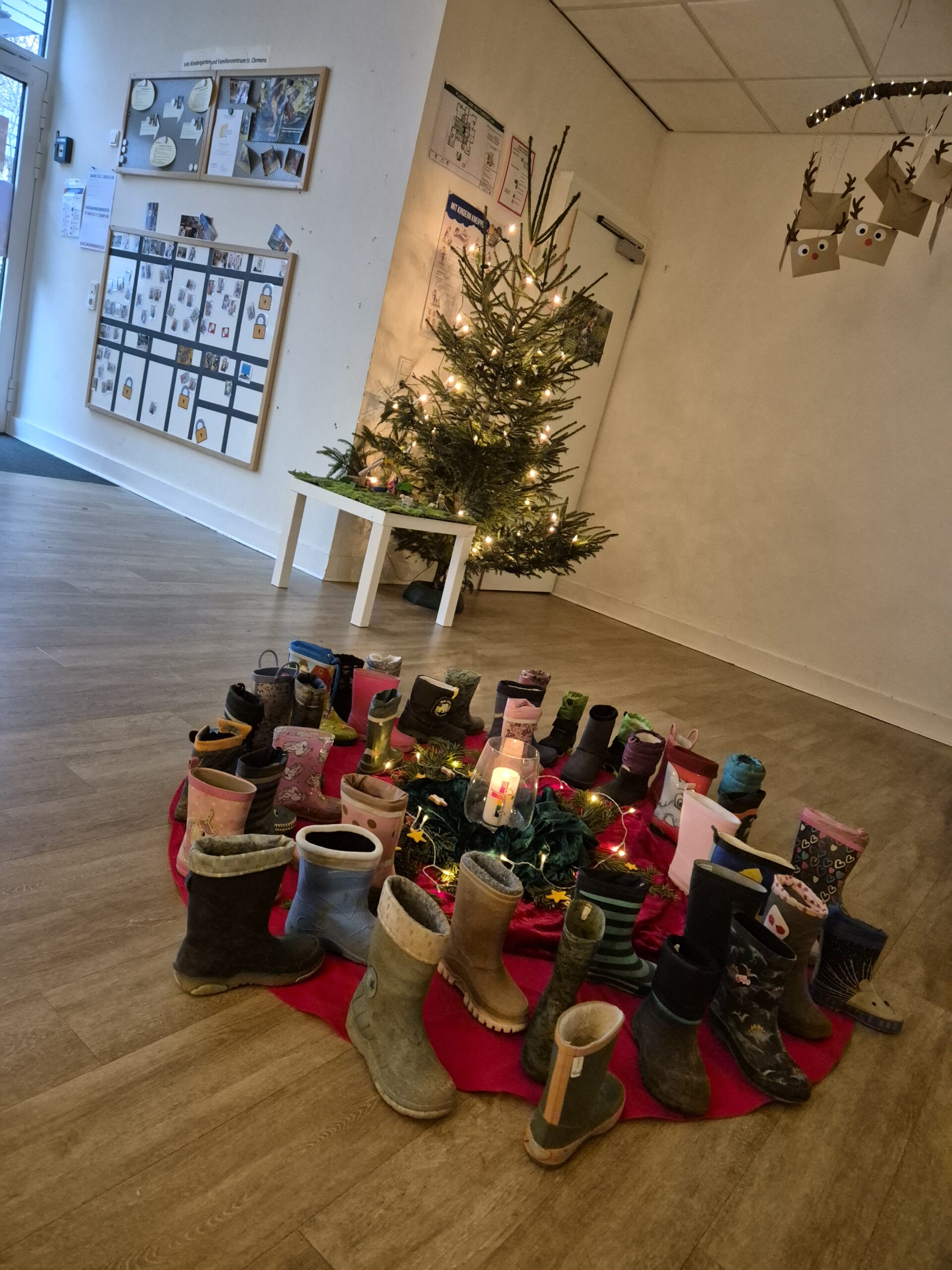 Unser kleiner Wichtel Floppi hat am Wochenende von jedem Kind einen Stiefel versteckt. Wie die wohl alle in sein zu Hause gepasst haben?